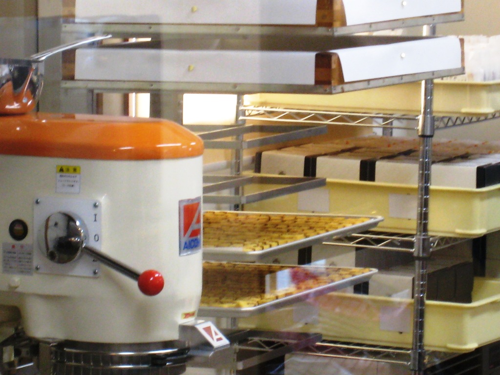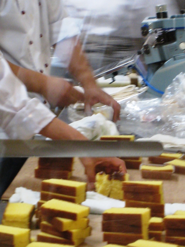 ここは ガラス張りの 工房でカステラを 作っているところが