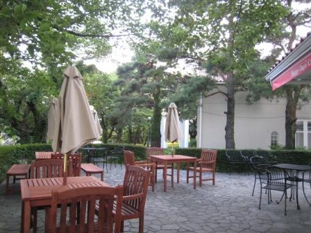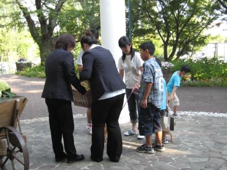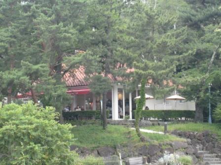 当館の庭で。